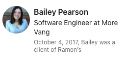 Ramon was a great help to me as I looked for a co-op. He helped me develop my story and practiced interview prompts with me till I was comfortable telling it myself. He also taught me good networking skills and new ways to reach out to recruiters and other employees who were willing to help me out and pass my resume along. I'm very thankful for his help and the skills he has taught me. I'd gladly recommend his services to anyone struggling to find a co-op/internship/job
